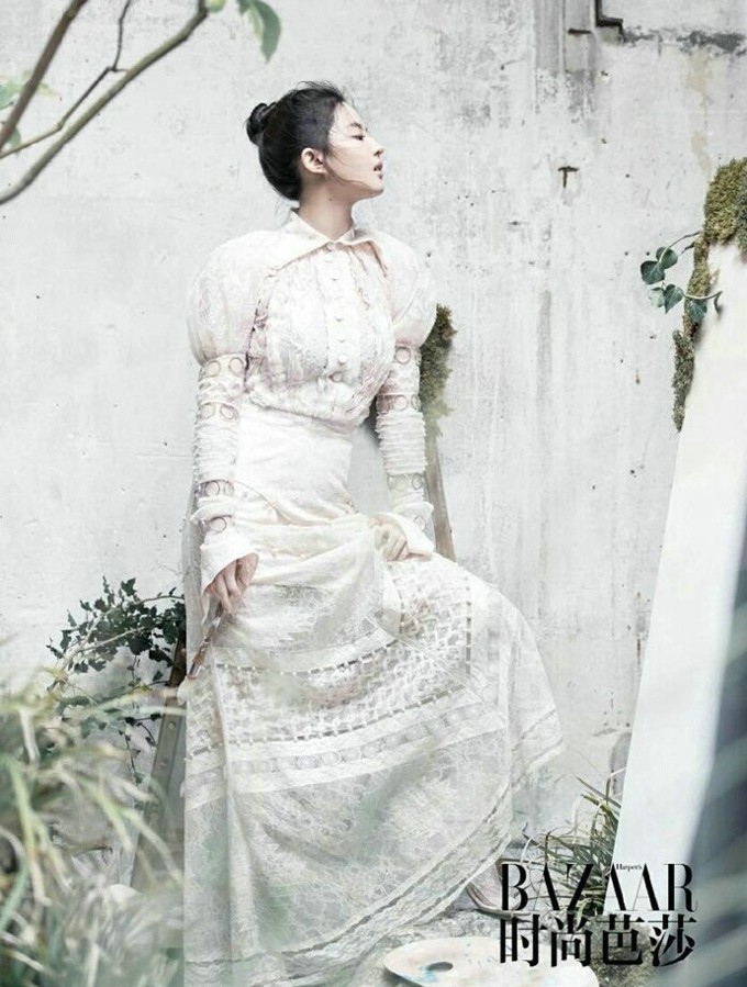 袁姗姗皎洁如月香肩微露演绎时尚封面新美学